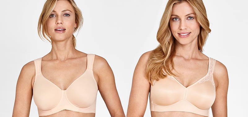 Fra venstre en t-skjort- bh med bøyler i Keep-Fresh stoff og den bøylefrie t-skjorte-behåen Smoothly